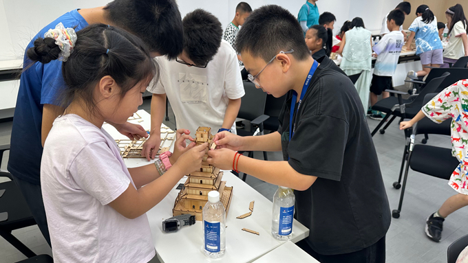 活動當(dāng)天,現(xiàn)場工作人員帶領(lǐng)孩子和工友們走進(jìn)中國五冶集團(tuán)科技中心大廈,沿著精心設(shè)計的路線,深度探索這座零碳建筑的“科技密碼”,大家觀看了中國五冶集團(tuán)自主研發(fā)的建筑智慧低碳運(yùn)維系統(tǒng),并參觀了多個頂級科學(xué)家領(lǐng)銜的創(chuàng)新工作室和建筑工業(yè)化與智能建造、城市更新、智慧機(jī)電、公園城市、綠色與智慧巖土等八大工程技術(shù)研究中心,全方位體驗(yàn)了零碳建筑的科技魅力。參觀結(jié)束后,“裝配式建筑科普講座”精彩開講,工作人員通過生動的圖文視頻,深入淺出地講解了裝配式建筑與傳統(tǒng)建筑的區(qū)別,帶領(lǐng)大家穿越不同歷史時期,感受裝配式建筑的發(fā)展脈絡(luò),了解裝配式建筑的諸多優(yōu)點(diǎn)和未來發(fā)展前景,讓孩子們對裝配式建筑有了全新的認(rèn)知。隨后,“趣味小試驗(yàn)”環(huán)節(jié)將活動推向高潮,孩子們每4人被分成1個小組,展開了一場緊張而歡樂的“建筑搭建大比拼”,大家齊心協(xié)力,將零散構(gòu)件組建成精巧的建筑模型,優(yōu)先完成搭建的小組收獲了精美獎品,現(xiàn)場歡聲笑語不斷。活動結(jié)束后,工作人員向全體兒童贈送了文具用品并給予祝福,鼓勵他們好好學(xué)習(xí)、健康成長。